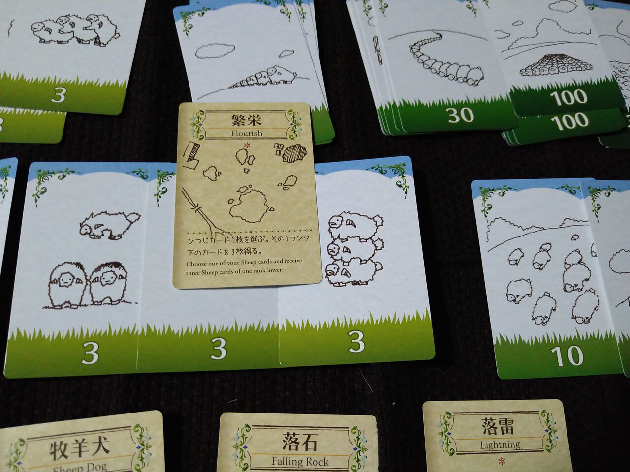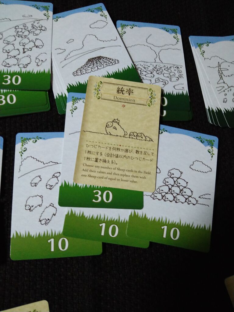 実況:今回は「繁栄」のカードから始まります。③のひつじ3枚をフィールドに出しました。
