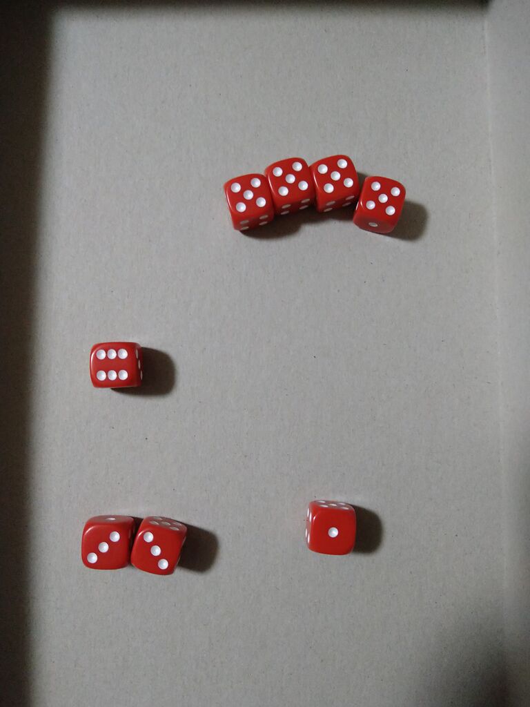 上の画像のように全員が全部のサイコロを置くまでサイコロを順番に振っていきます。