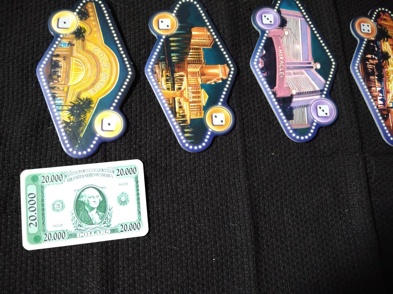 お金カードをボードの近くに並べていきます。$50,000以上になるように並べます。