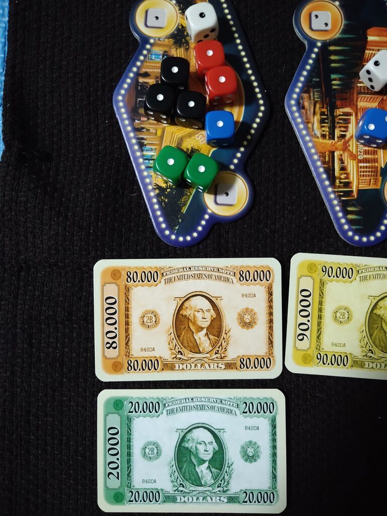 全てのボードの賞金の分配が終わったら、サイコロを戻し、獲得できなかったお金カードを捨てて、並びなおし、1番最初にサイコロを投げる人を交代して、次のターンを始めます。このように4ターン遊んだ後で、1番多くのお金を持っている人が勝ちです。
