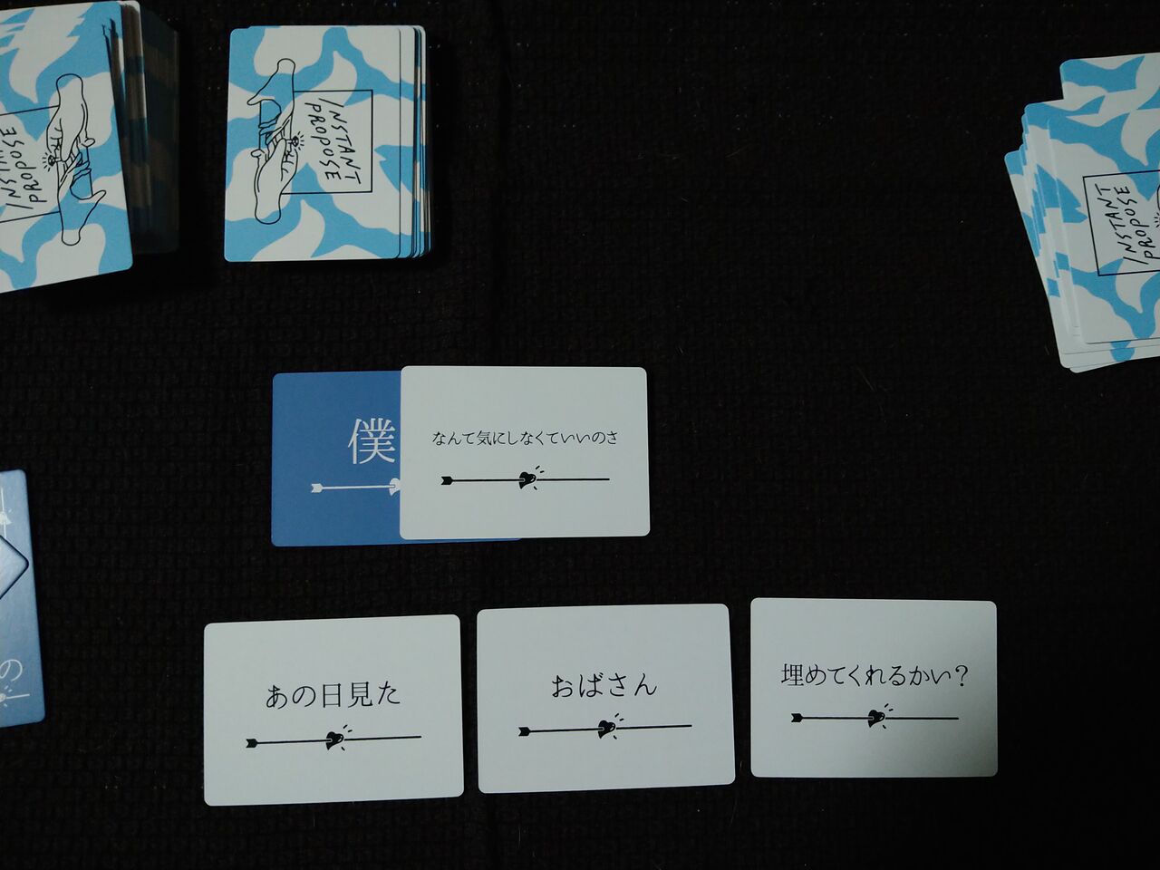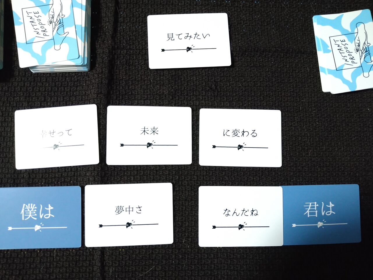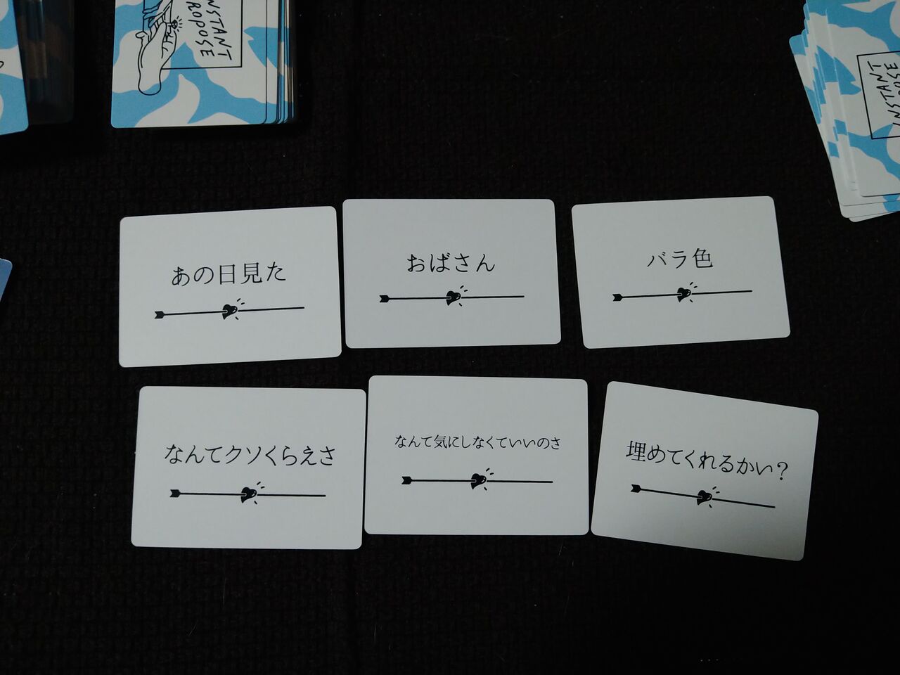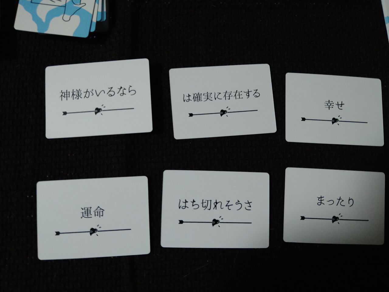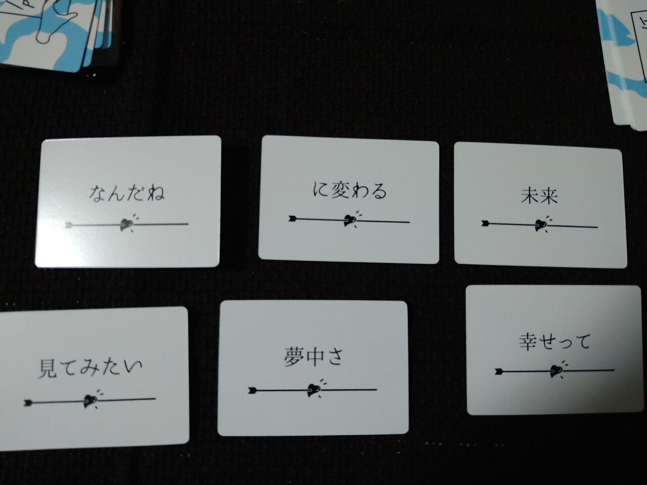基本的には実際のルールと同じように、ランダムで引いた6枚のカードを初期カードと組み合わせて文を作ります。