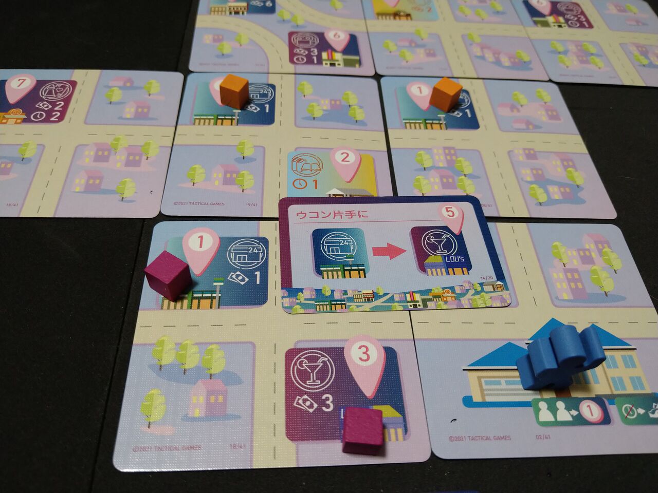 実況:寄った店にオレンジや赤のトークンが置かれています。