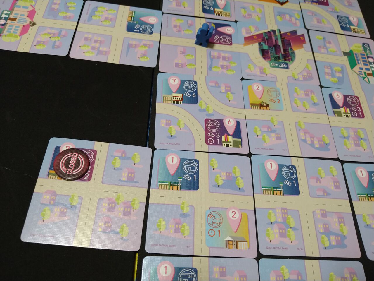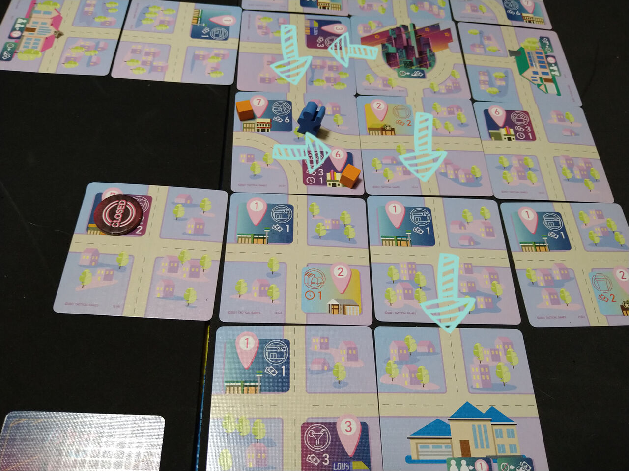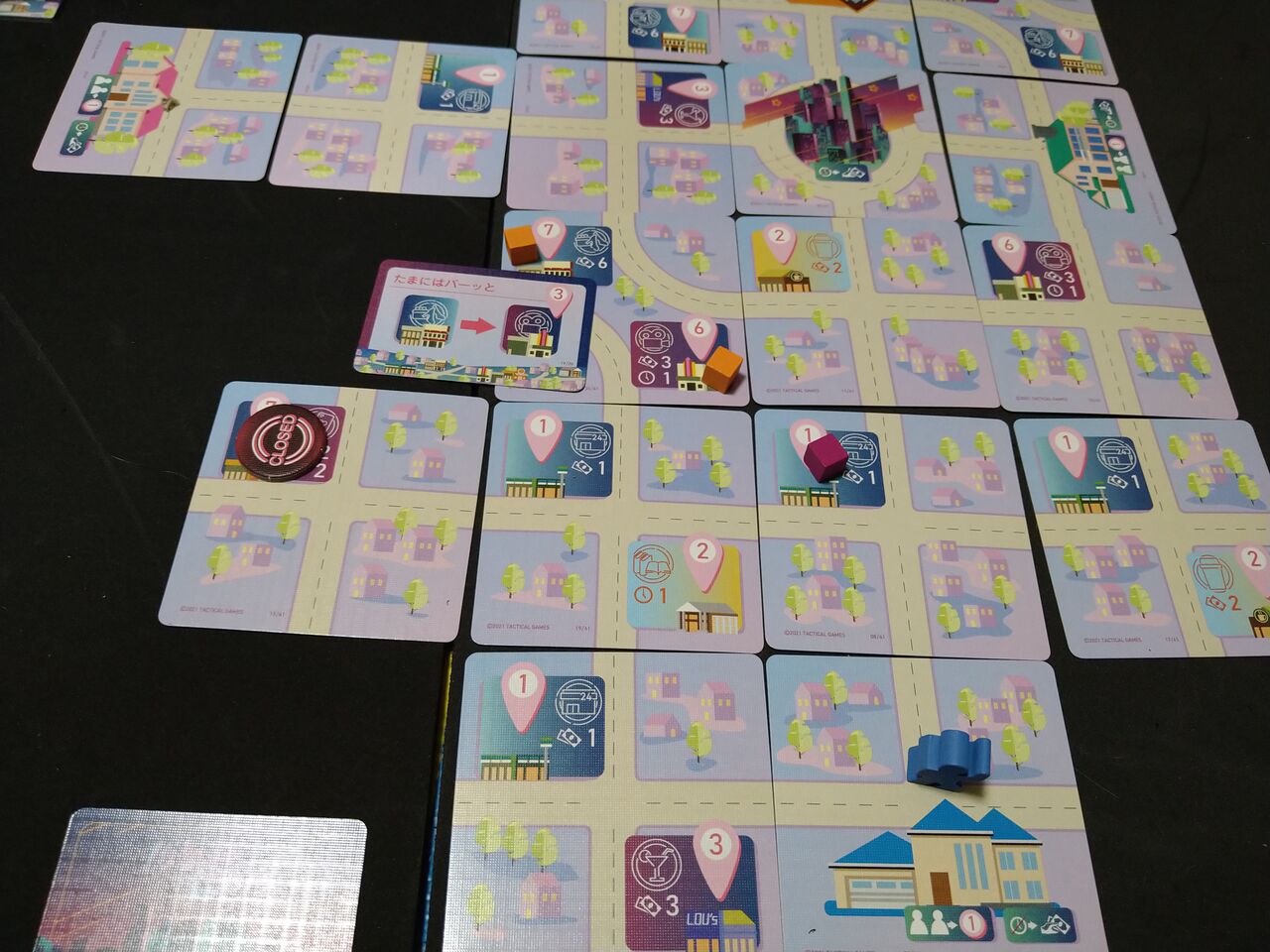 実況:立ち寄った店を見てみましょう。実況:オレンジや赤のトークンが立ち寄ったお店のようですね。