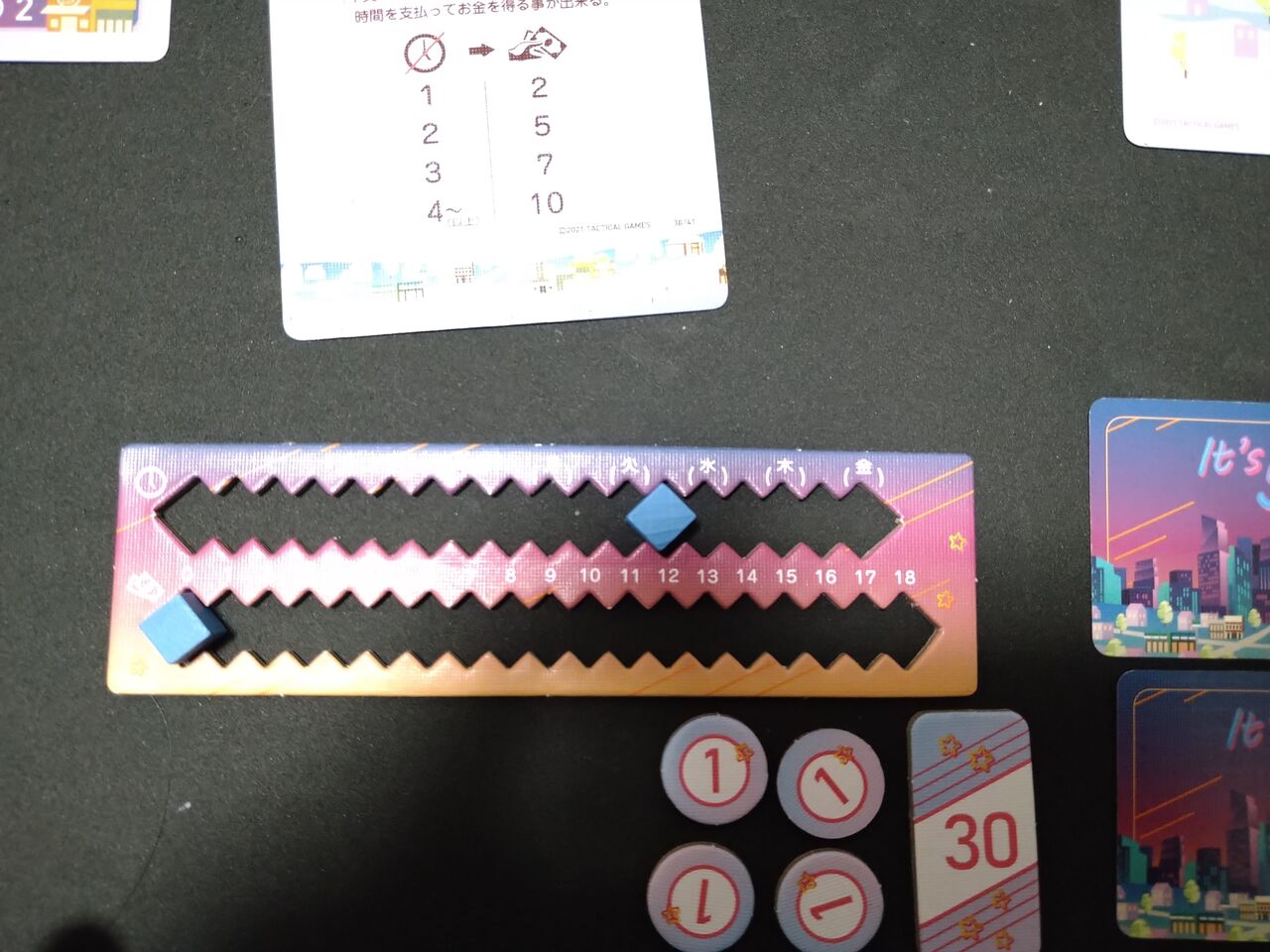 「コンビニ」で「1」、そして目的カードで「3」獲得しました。
