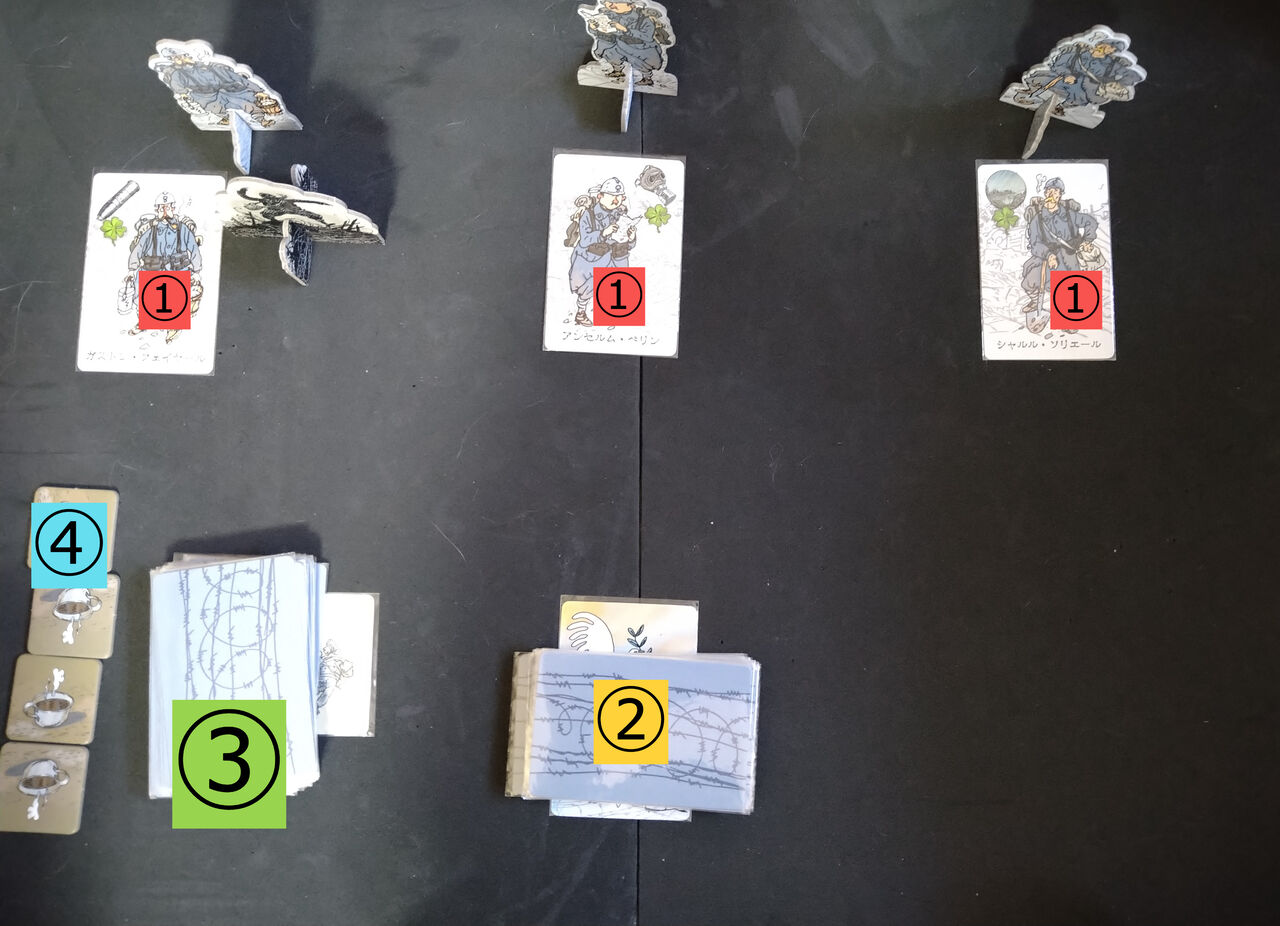 「残り士気」のカードが0枚になってしまうと、負けです。