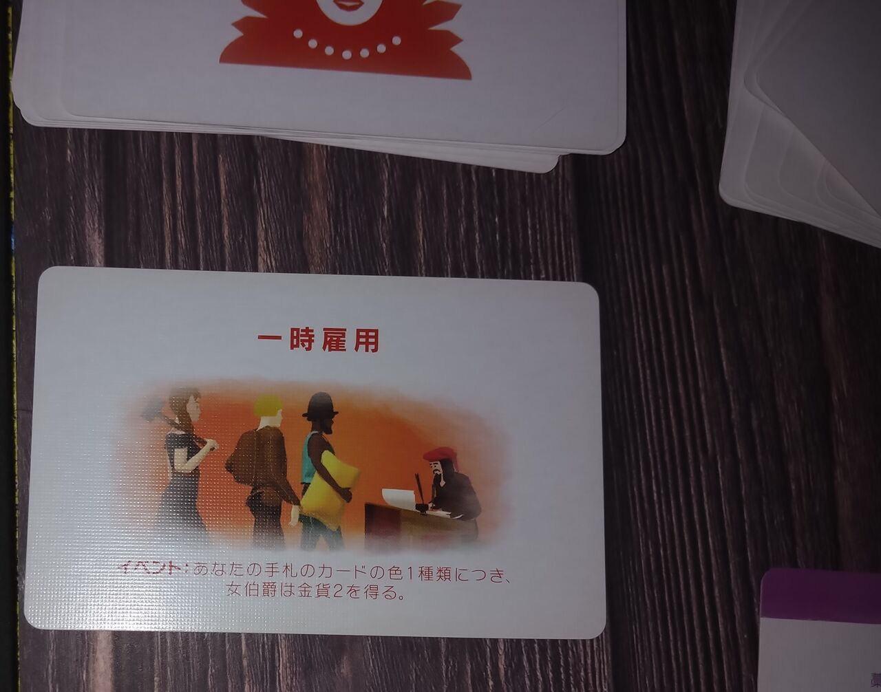 「手札のカードの色1種類につき女伯爵は金貨2枚を得る」と書いてあります。