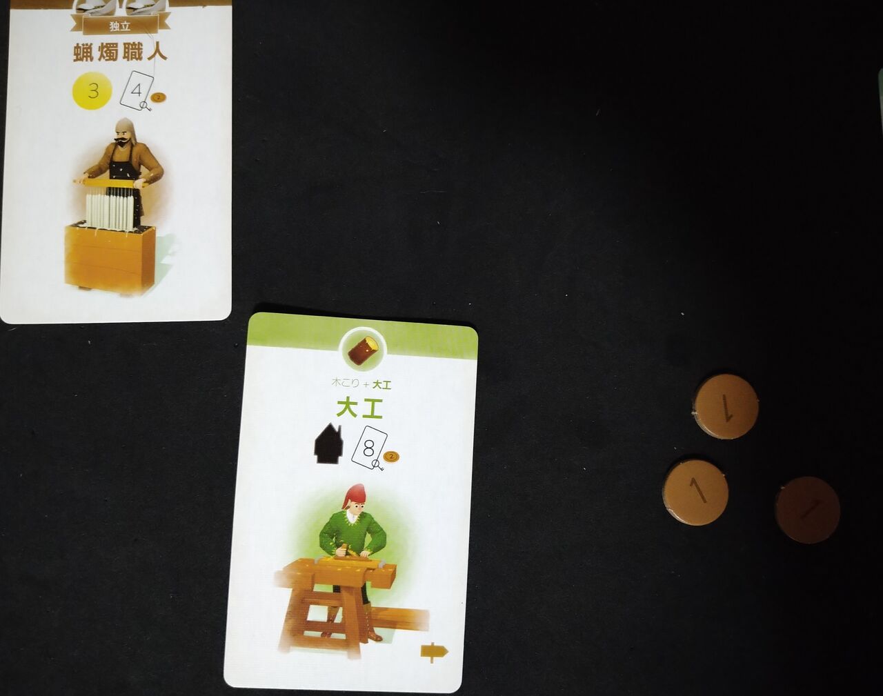 先ほどの「基本村人」は建設において非常に必要になるカードなので、手に入れておきたいところですが。