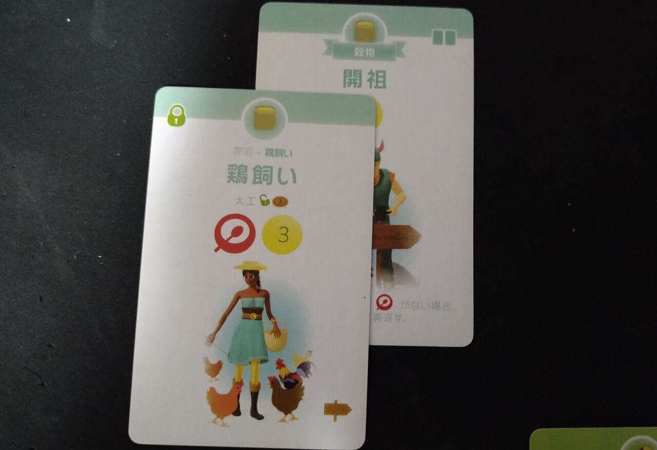 「開祖」のカードの上に「鶏飼い」のカードが乗っていますね。
