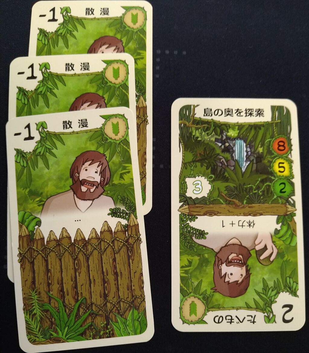 解説:ここで⑤ポイントも体力を奪われるのは痛いですが、邪魔なカード3枚を除外できたと考えましょう。